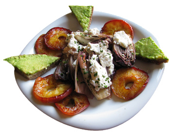 Chicorée und Papaya mit lauwarmem Ziegenfrischkäse